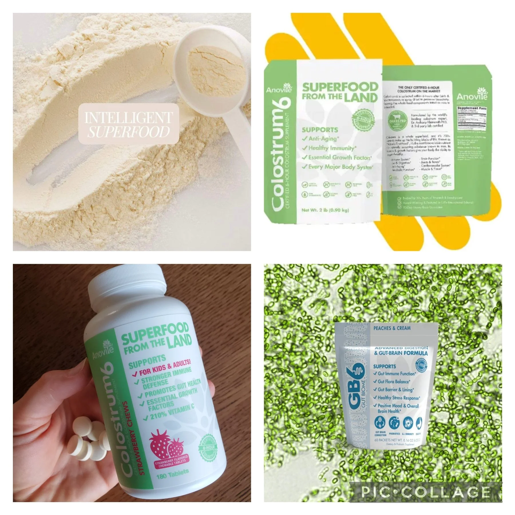 Experience the power of 6-hour bovine colostrum. Taken within the first 6 hours after birth, this is one of the most powerful superfoods, containing over 700 nutrients. Rebuild, repair, & regenerate every system in the body. Huge benefits to the digestive and immune systems. Anovite carries the base product of straight colostrum and a collection of other amazing products built off of the colostrum-6.
